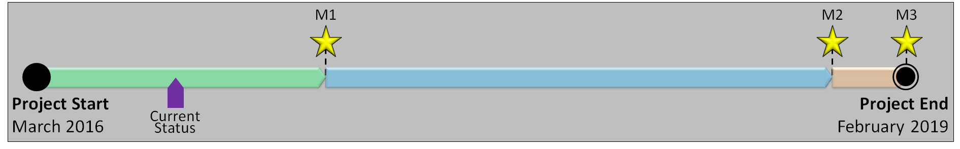 Milestone M2: “Methods / techniques developed and tested” marks end of phase 2.